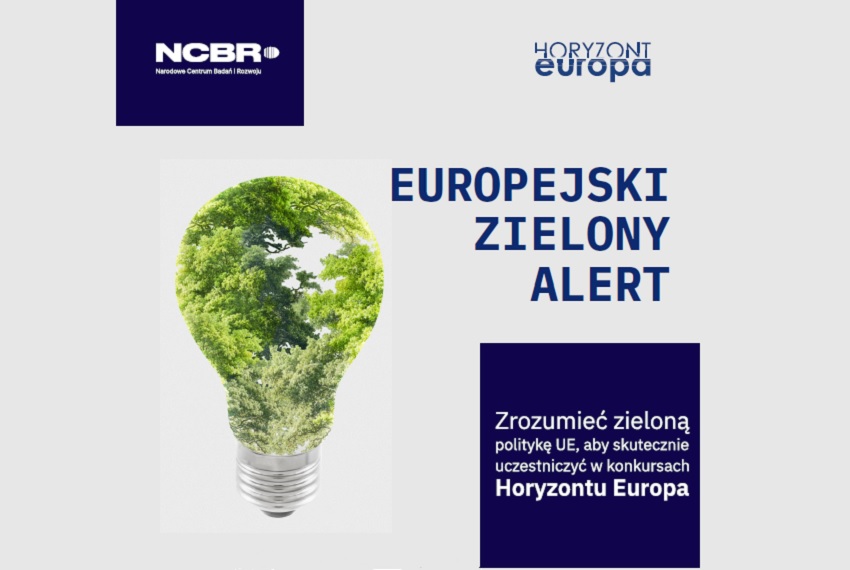 Dział Krajowego Punktu Kontaktowego ds. Horyzontu Europa przygotował istotną i oczekiwaną publikację pt. „Europejski Zielony Alert. Zrozumieć zieloną politykę UE, aby skuteczniej uczestniczyć w konkursach Horyzontu Europa”. Oddajemy w Państwa ręce kompendium wiedzy na temat strategii Unii Europejskiej w zakresie zrównoważonego rozwoju, energii, transportu, Gospodarki o Obiegu Zamkniętym, Nowego Europejskiego Bauhausu, ochrony środowiska, bezpieczeństwa żywnościowego i bioróżnorodności.