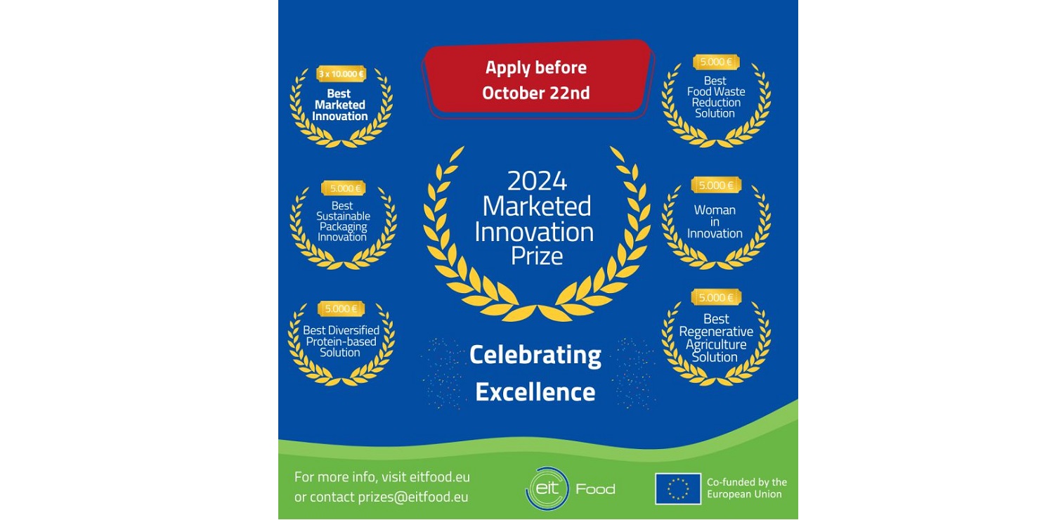 Otwarty jest nabór w konkursie EIT Food o nagrodę rynkową – Marketed Innovation Prize. Konkurs jest otwarty dla wszystkich organizacji, które opracowały produkt lub usługę przy wcześniejszym wsparciu EIT Food. Zgłoszenia należy nadsyłać do 22 października 2024.