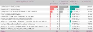 Niekwestionowanym liderem w skali kraju, zarówno pod względem dofinansowania, liczby projektów, jak i koordynacji jest Uniwersytet Warszawski – jak dotąd zdobył on 28,3 mln euro netto na realizację 16 projektów, z tego 15 koordynowanych, pełniąc rolę instytucji goszczącej. Na drugim miejscu jest Uniwersytet Jagielloński z 8 projektami na kwotę 15,7 mln euro. Miejsce trzecie w tym rankingu zajmuje  Uniwersytet im. Adama Mickiewicza w Poznaniu (6 projektów na kwotę 6,2 mln euro).