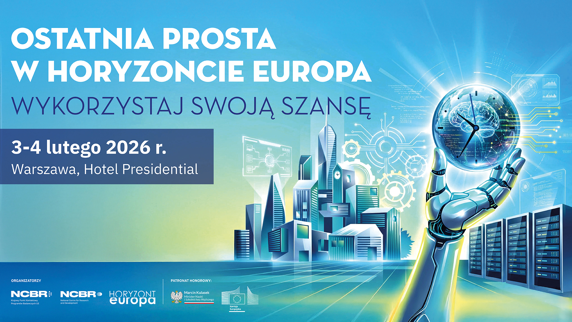 Krajowy Punkt Kontaktowy Programów Badawczych UE w NCBR zaprasza na dzień informacyjny “Ostatnia prosta w Horyzoncie Europa. Wykorzystaj swoją szansę!”, który odbędzie się 3-4 lutego 2026 r. w Warszawie. Wydarzenie poświęcone będzie ostatnim konkursom w obecnej perspektywie finansowej (2021–2027).
