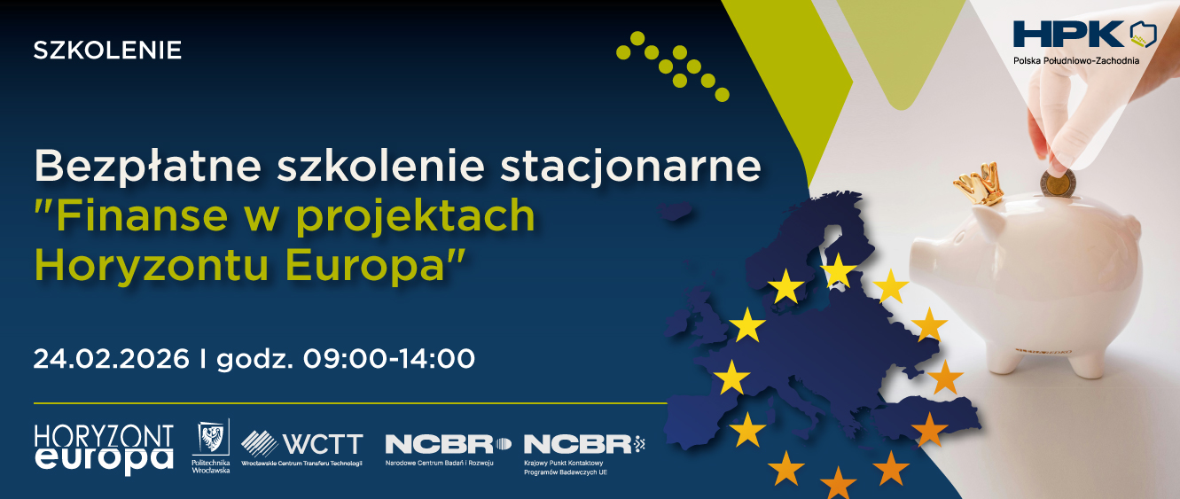 Horyzontalny Punkt Kontaktowy Polska Południowo – Zachodnia zaprasza na bezpłatne szkolenie pt. „Finanse w projektach Horyzontu Europa”. Wydarzenie będzie miało charakter stacjonarny i odbędzie się 24 lutego br. w godz. 09:00 -14:00.