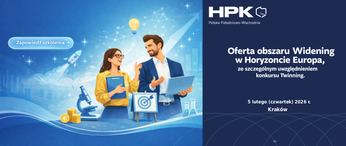 Horyzontalny Punkt Kontaktowy Polska Południowo – Wschodnia wraz z KPK serdecznie zapraszają na szkolenie dotyczące pakietu WIDENING w Programie HORYZONT EUROPA, ze szczególnym uwzględnieniem ostatniego konkursu Twinning.